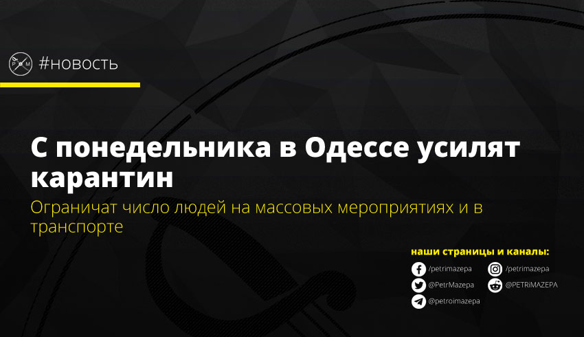 В Одессе с 22 июня будут усилены меры карантина для противодействия COVID-19. Горсовет и городской голова запретили находиться в общественных зданиях без маски, находиться на улице без документов, проводить массовые мероприятия без соблюдения дистанции и посещать учреждения образования в группе более 10 человек.