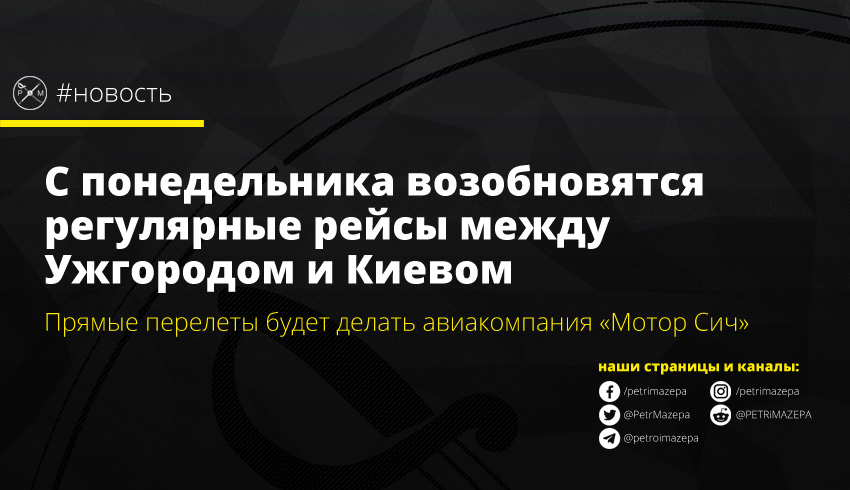С понедельника возобновятся регулярные рейсы между Ужгородом и Киевом