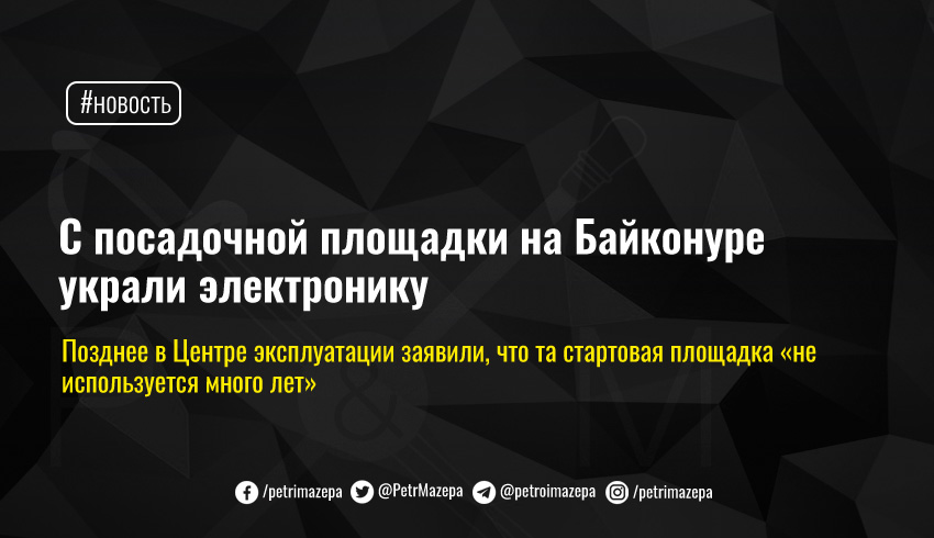 МВД РФ ведет расследование по факту кражи с посадочной площадки космодрома «Байконур» деталей с драгоценными металлами. В Центре эксплуатации объектов наземной космической инфраструктуры заявили, что стартовая площадка №110 уже давно не используется, поэтому кража не повлияет на работу космодрома.