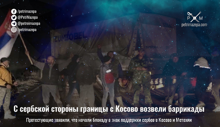 Группа из около 20 человек, часть которых одета в камуфляж, вечером 27 декабря заблокировала пограничный переход Мердаре между центральной Сербией и Косово с сербской стороны.