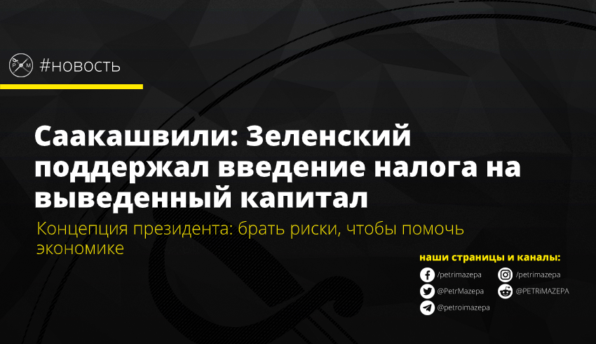 Глава исполкома Нацсовета реформ Михеил Саакашвили сообщил, что президент Владимир Зеленский радикально поддержал замену налога на прибыль налогом на выведенный капитал.