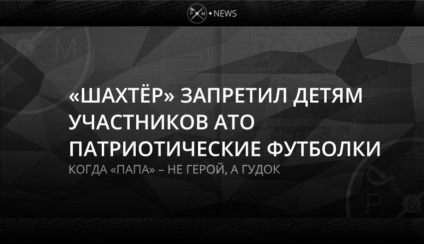 Донецкий футбольный клуб «Шахтёр» запретил детям участников АТО выводить своих игроков на поле в футболках с надписями «Мой папа – герой!». Как сообщает ТСН, накануне, перед началом матча Премьер-лиги «Олимпик» – «Шахтёр», детей предупредили, что футболистов надо сопровождать в обычной одежде. Никаких официальных заявлений по поводу такого решения пока не было.