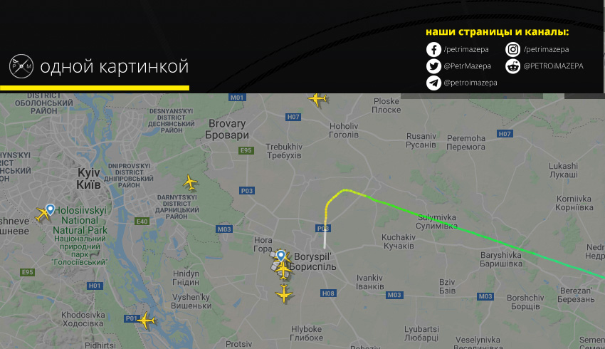 Самолет с эвакуированными из Китая украинцами заходит сел в Борисполе. Перед этим рейсу пришлось долго кружиться над Харьковом, где он не смог сесть то ли из-за погоды, то ли из-за протестов в Полтавской области, где располагается одно из теоретических мест для проведения карантина.