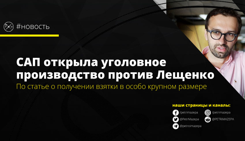 «Согласно опубликованной в СМИ информации народный депутат систематически получал миллионные взятки от предпринимателя за лоббирование бизнес-интересов последнего, а именно осуществления влияния на чиновников органов власти и правоохранительных органов, а также формирования необходимых общественных мнений в медиапространстве. С целью проверки изложенных в публикации фактов прокурорами Специальной антикоррупционной прокуратуры зарегистрировано уголовное производство по предварительной правовой квалификации ч. 4 ст. 368 УК Украины и вызван на допрос народный депутат Украины Сергей Лещенко», - сообщается на официальной странице САП в Facebook. В публикации напомнили и про покупку Лещенко квартиры «за средства, якобы полученные в качестве неправомерной выгоды», и отметили что досудебное расследование будет осуществляться детективами НАБУ, а САП будет осуществлять процессуальное руководство.