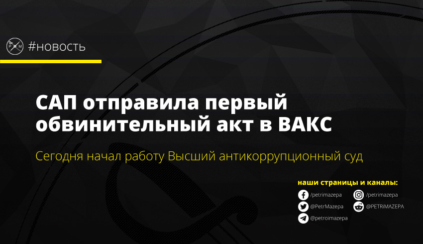 Специализированная антикоррупционная прокуратура (САП) направила первый обвинительный акт в Высший антикоррупционный суд (ВАКС).
