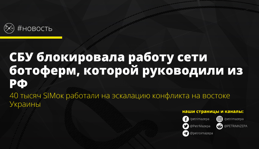 Сотрудники Службы безопасности Украины (СБУ) блокировали деятельность межрегиональной сети ботоферм в Киеве и ряде областей, которая выполняла заказ на эскалацию конфликта на востоке Украины. Сетью ботоферм руководили из страны-агрессора.