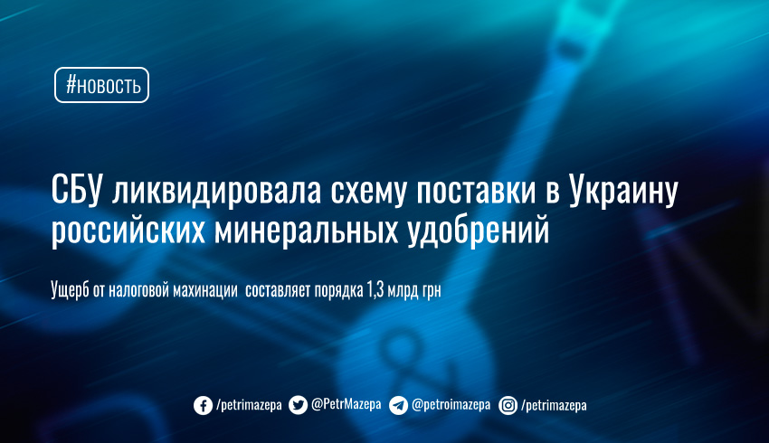 Служба безопасности Украины ликвидировала схему поставки в Украину российских минеральных удобрений без уплаты таможенных платежей. Ущерб от схемы составляет порядка 1,3 млрд грн.