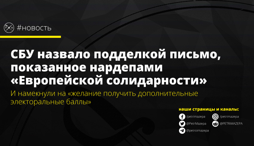 Сегодня утром нардеп Алексей Гончаренко сообщил на брифинге о том, что на имя лидера «Европейской солидарности» Петра Порошенко пришли письмо от СБУ Донецкой и Луганской областей «с требованием предоставить информацию о своих кандидатов на местных выборах в этих областях». В СБУ отреагировали на заявление и назвали показанное письмо фейковым, а заявления в давлении на оппозицию – попытками «получить дополнительные электоральные баллы».