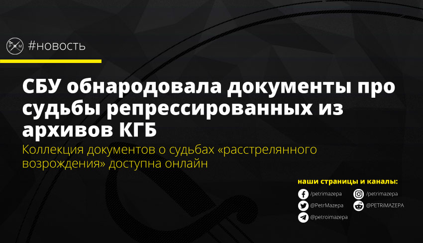 «Жертвами террора 1937-1938 годов стали более 250 тысяч украинцев. Большинство из них были расстреляны. А их семьям сообщали про смерть из-за инфарктов и сердечных приступов. Была даже отдельная директива – с родственниками расстрелянных говорить устно, а дату смерти в справках ставить произвольно, в рамках 10 лет после ареста. Сегодня документы из архивов КГБ доступны онлайн. Коллекция о судьбах “расстрелянного возрождения” показывает, как скрывалась правда», - сообщается на официальной странице СБУ в Facebook. Там же можно увидеть ссылку на документы в электронном архиве.