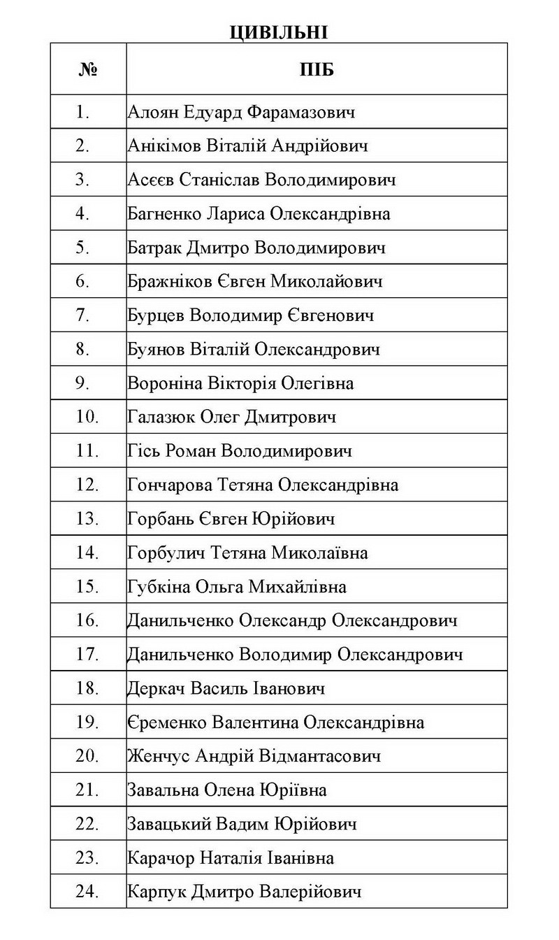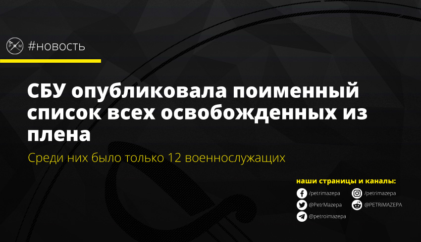 Служба безопасности Украины (СБУ) опубликовала поименный список всех освобожденных из плена. Среди 76 освобожденных украинцев было 12 военнослужащих, а также – 20 человек, которые находились в плену террористов с 2015-2016 годов.