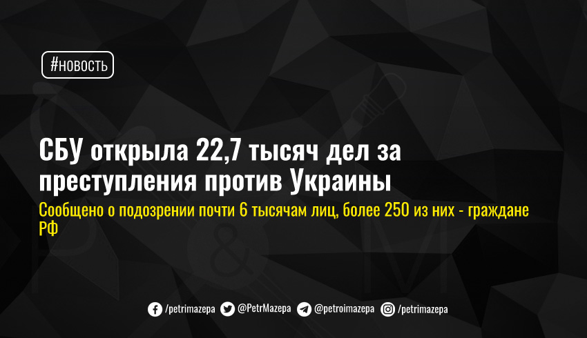 СБУ открыла 22,7 тысяч дел за преступления против Украины