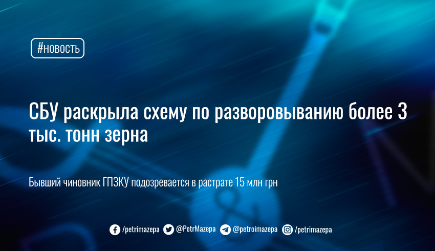 Служба безопасности, Национальное антикоррупционное бюро и Специализированная антикоррупционная прокуратура разоблачили коррупционную схему в «Государственной продовольственно-зерновой корпорации Украины».