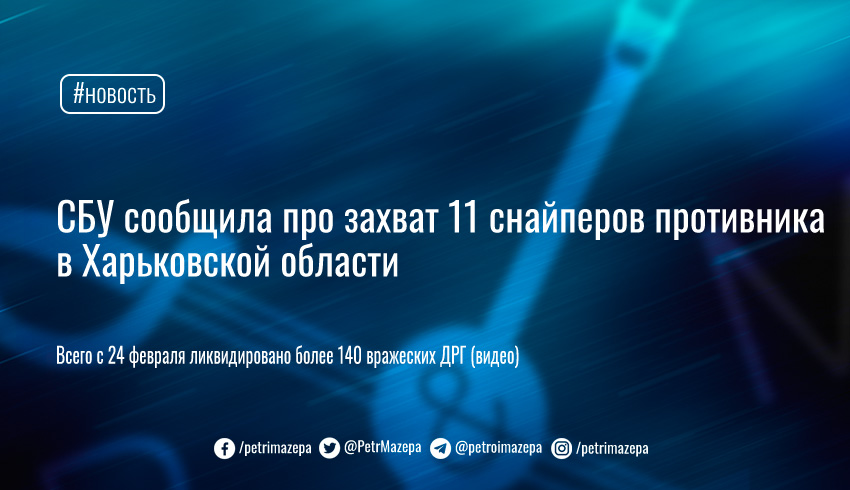 Так, в Харьковской области «в ходе спецоперации СБУ было взято в плен 11 российских снайперов. Задержанные входили в состав так называемого "115 полка ДНР", обстреливавшего украинские позиции», — сообщил спикер СБУ Артем Дехтяренко в видеоотчете.