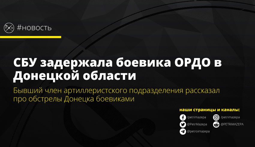 Контрразведчики СБУ, привлеченные к ООС, задержали в Донецкой области боевика ОРДО. Местный житель с 2016 года был членом одного из артиллеристских подразделений боевиков, а сейчас он уже дает показания о многочисленных обстрелах Донецка незаконными вооруженными формированиями, и про причастность РФ к оккупации ОРДЛО.