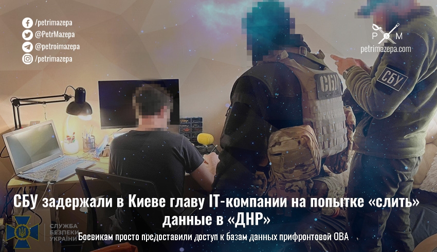 Сотрудники СБУ разоблачили столичную IT-компанию на попытке «слить» данные из прифронтовой ОВА боевикам ОРДЛО. Они просто открыли доступ к базам данных областной военно-гражданской администрации «филиалу из Донецка», работники которого оказались боевиками «днр».