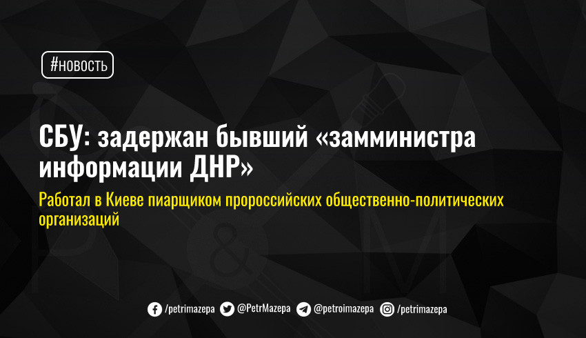 В Киеве сотрудники Службы безопасности Украины (СБУ) объявили о подозрении «экс-заместителю министра информации ДНР». Теперь его обвиняют в посягательстве на территориальную целостность и неприкосновенность Украины и создании террористической группы или организации.