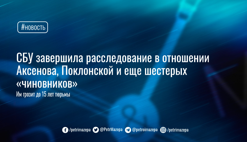 По данным СБУ, так называемых «главу республики Крым» Сергея Аксенова, председателя «государственного совета республики Крым» Владимира Константинова, «прокурора республики Крым» Наталью Поклонскую и еще пятерых высокопоставленных должностных лиц временно оккупированного полуострова подозревают в совершении преступлений по ст. 109 (действия, направленные на насильственное изменение или свержение конституционного строя или на захват государственной власти); ст. 110 (посягательство на территориальную целостность и неприкосновенность Украины); ст. 111 (государственная измена); ст. 255 (создание преступной организации) Уголовного кодекса.