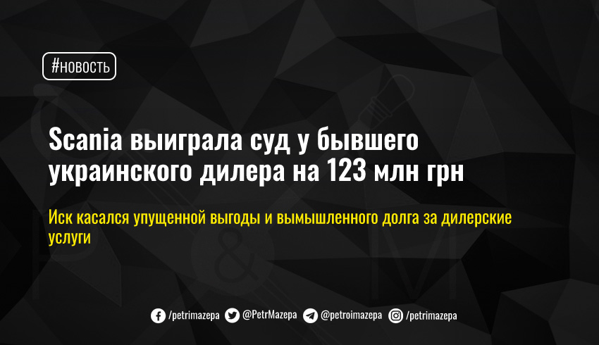 Scania выиграла суд у бывшего украинского дилера на 123 млн грн