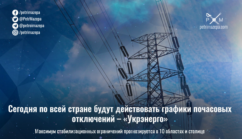 Сегодня по всей Украине будут действовать почасовые графики отключения электроэнергии — об этом сообщает компания «Укрэнерго» в Telegram.
