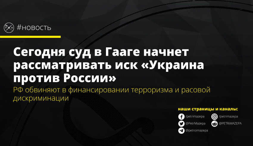 Сегодня Международный суд в Гааге начнет рассматривать первое дело «Украина против России», которое касается обвинения РФ в нарушении Конвенций о борьбе с финансированием терроризма и о расовой дискриминации.