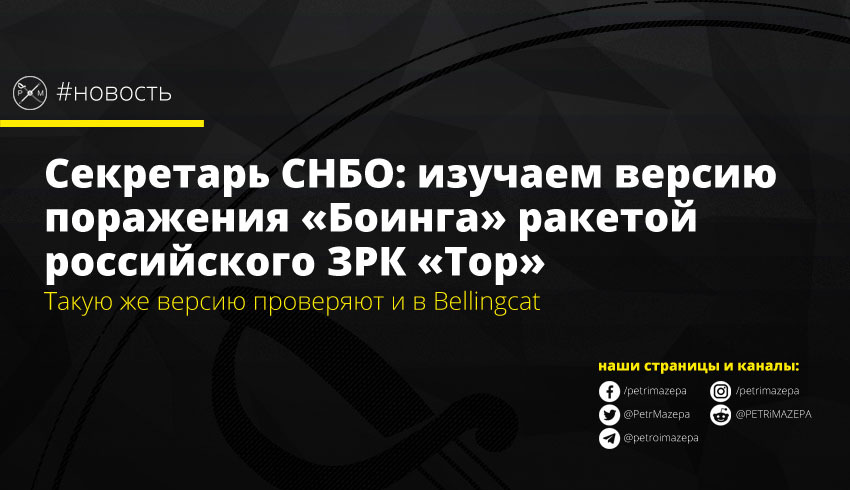 Секретарь СНБО: изучаем версию поражения «Боинга» ракетой российского ЗРК «Тор»