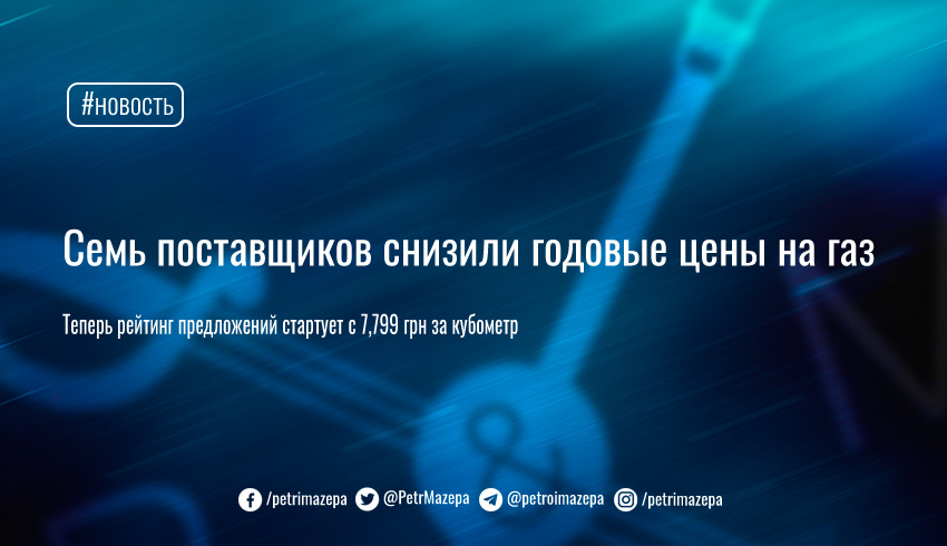 Однако сегодня, свои ноябрьские ценники снизили сразу семь газоснабжающих компаний. В итоге рейтинг самых выгодных предложений изменился и теперь стартует с 7,799 грн за кубометр, сообщает консультационный центр «Газ Правда».