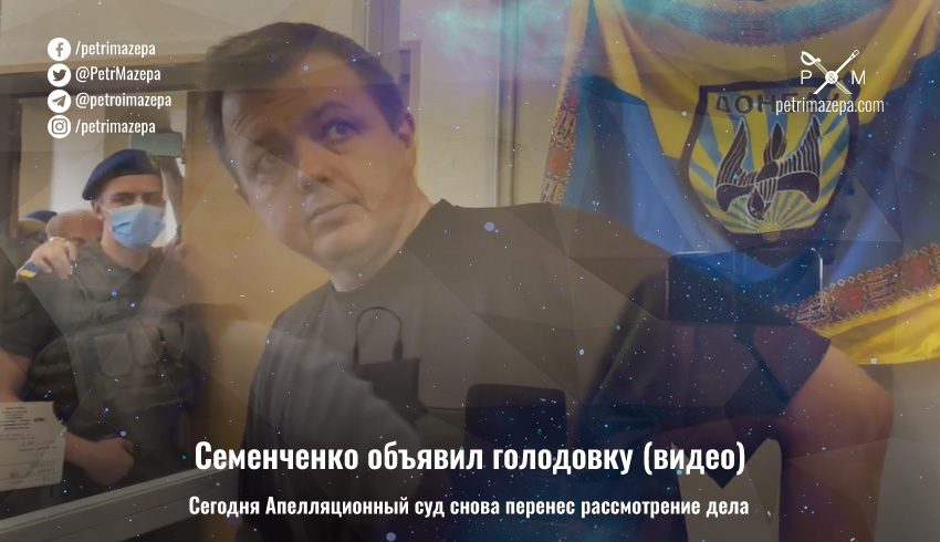 Апелляционный суд 20 августа снова перенес рассмотрение дела Семен Семенченко на 3 сентября. В зале суда Семенченко объявил о начале бессрочной голодовки.