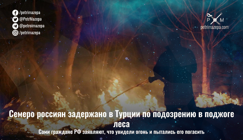 В турецкой Анталии задержаны семь граждан России. Их обвиняют в поджоге леса 23 октября. Россияне же утверждают, что увидели начало пожара на своем маршруте и пытались его потушить, а также – сами позвонили в 911, чтобы вызвать спасателей.