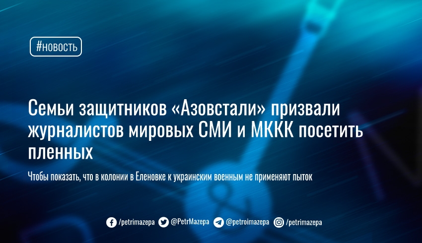 Семьи защитников «Азовстали» призвали журналистов мировых СМИ и МККК посетить пленных