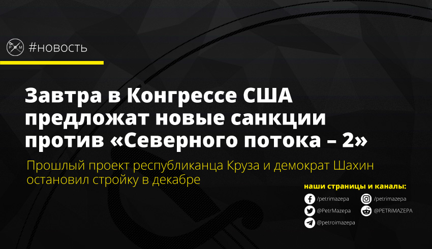 1 июня сенатор-республиканец Тед Круз и демократ Джинн Шахин внесут на рассмотрение Конгресса новые санкции в отношении газопровода «Северный поток – 2», который страна-агрессор пытается достроить самостоятельно.