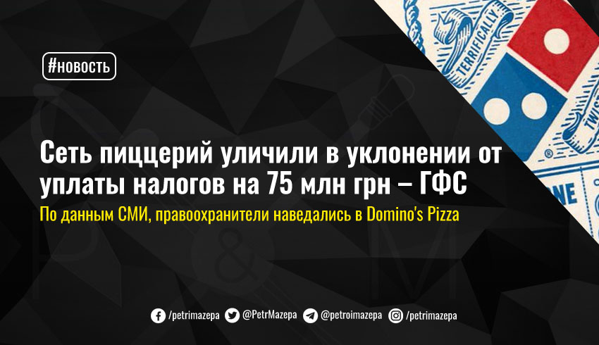 Государственная фискальная служба сообщила о раскрытии схемы уклонения от налогообложения сети пиццерий под известным международным брендом – они не выплатили в бюджет более 75 млн грн. По данным СМИ, речь идет о сети Domino's Pizza.