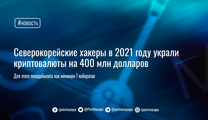 Компания по анализу блокчейнов Chainalysis заявила, что 2021 год был одним из самых успешных лет для северокорейских киберпреступников. В отчете компании говорится, что хакеры украли цифровых активов на сумму почти 400 миллионов долларов в ходе как минимум семи атак на криптовалютные платформы в прошлом году.