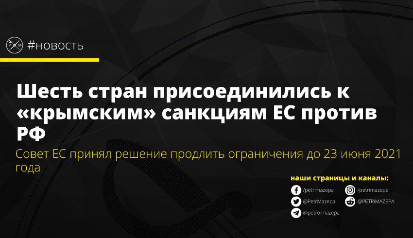Шесть европейских стран поддержали решение Европейского союза о продлении санкций против страны-агрессора из-за аннексии Крыма. Совет ЕС принял решение продлить санкции в отношении России до 23 июня 2021 года.
