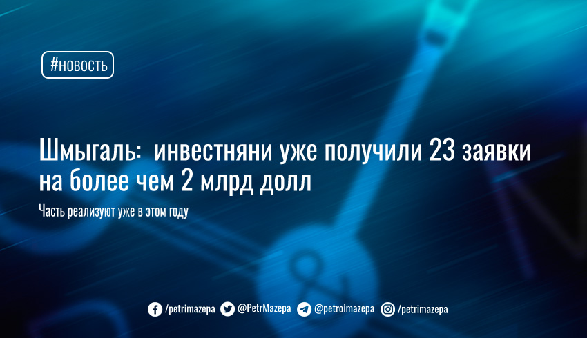 Шмыгаль: инвестняни уже получили 23 заявки на более чем 2 млрд долл