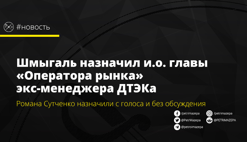 Шмыгаль назначил и.о. главы «Оператора рынка» экс-менеджера ДТЭКа