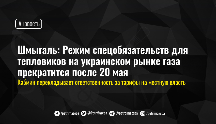 Шмыгаль: Режим спецобязательств для тепловиков на украинском рынке газа прекратится после 20 мая