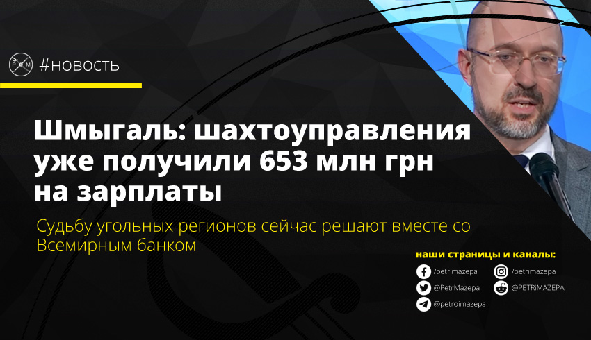 Шмыгаль: шахтоуправления уже получили 653 млн грн на зарплаты