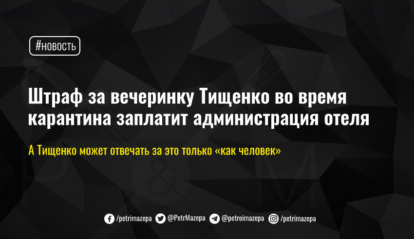 Штраф за вечеринку Тищенко во время карантина заплатит администрация отеля