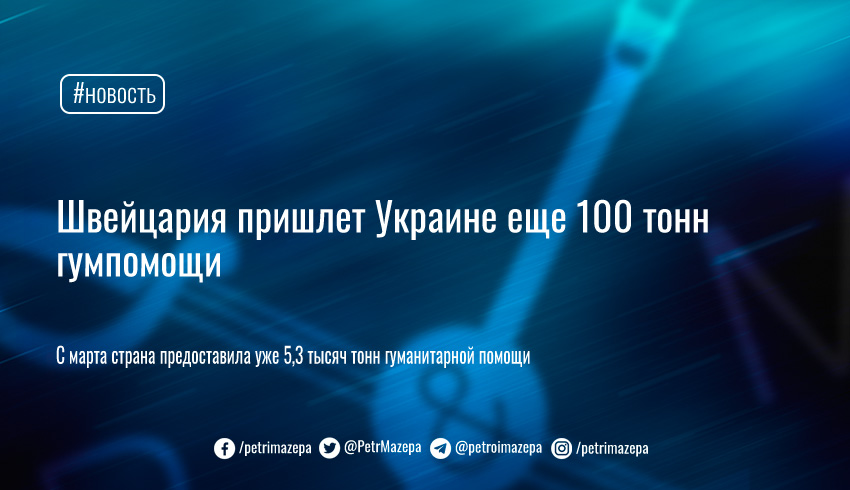 «Дополнительная гуманитарная помощь для Украины. Швейцария на этой неделе посылает 100 тонн грузов, включая медицинское и противопожарное оборудование», — сообщил Кассис в своем Twitter.