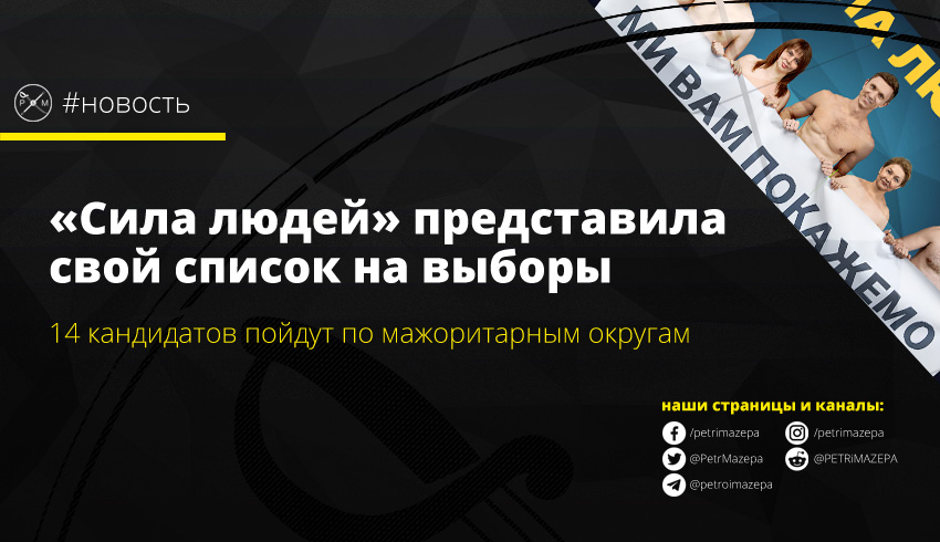 Партия «Сила людей» на своей странице в Facebook представила список из 14 человек, которые будут баллотироваться в Верховную раду от партии в мажоритарных округах.
