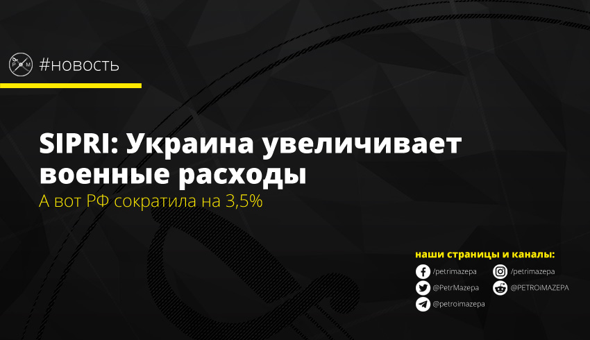Согласно отчету Стокгольмского международного института исследования проблем мира (SIPRI) в прошлом году военные расходы Украины возросли на 21% (до 4,8 млрд долларов) по сравнению с 2017 годом и на 53% - по сравнению с 2013 годом, за год перед началом конфликта на востоке Украины. В свою очередь, в РФ траты на военный сектор сократились.