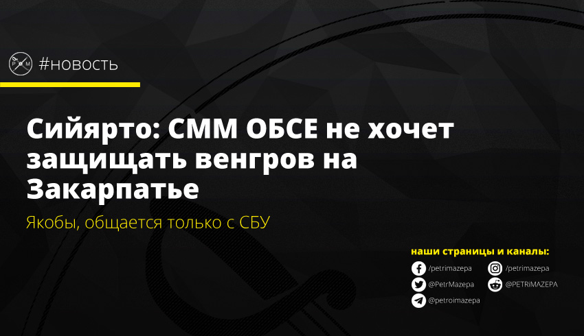 Сийярто: СММ ОБСЕ не хочет защищать венгров на Закарпатье