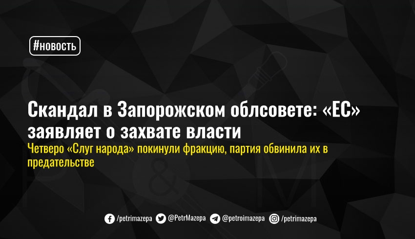 В Запорожском облсовете разразился скандал из-за избрания нового главы облсовета – его выбирали в закрытом режиме, без допуска некоторых депутатов и прессы. Депутаты «ЕС» уже заявили о захвате власти, четверо представителей «Слуги народа» из-за давления вышли из фракции и обратились в суд, а президентская партия обвинила своих бывших членов в предательстве.