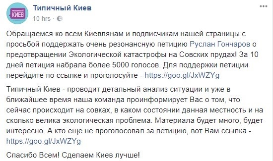 5. Одобрение левых петиций от застройщика. В этом году застройщик лоббировал очередное «обращение от народа» с просьбой застроить Совские пруды. Не буду давать ссылку на свой материал на другом сайте (чтобы не получилась реклама), суть такова: в Киеве внезапно нашелся молодой боксёр, который за пару суток склепал петицию и научился говорить на камеру с умным лицом. В плане «спасения местности» можно заметить все признаки грядущей застройки, а петицию на платной основе раскручивали «Типичный Киев» и его сателлиты. В отличие от более важных идей, эту киевская власть проглотила с завидной скоростью.