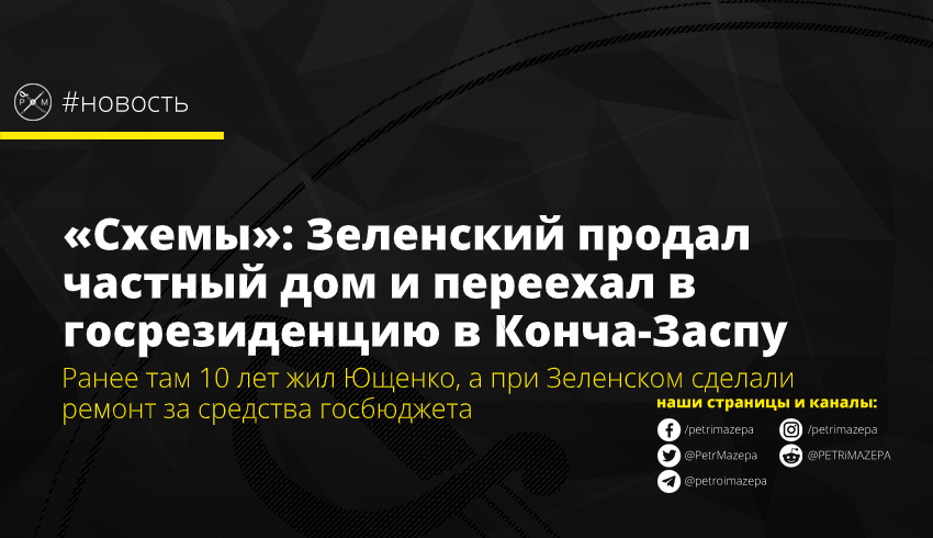 Президент Владимир Зеленский продал свой частный дом в поселке Иванковичи и переехал в государственную резиденцию в Конча-Заспе, в которой на протяжение 10 лет с 2004 по 2014 год жил третий президент Виктор Ющенко.