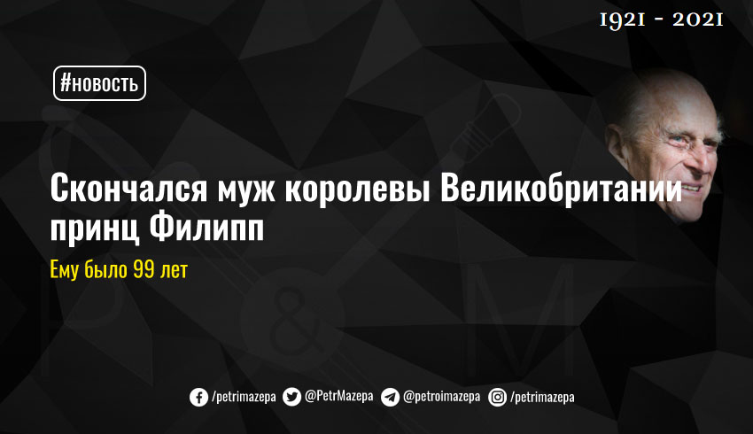 Супруг королевы Великобритании принц Филипп, герцог Эдинбургский, скончался этим утром в Виндзорском замке.