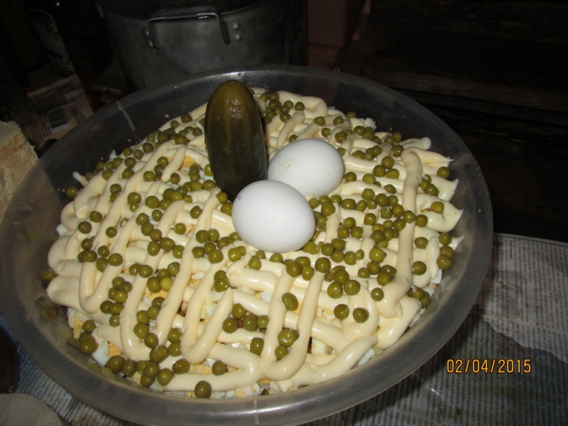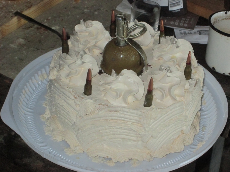 Изготовление кулинарных изысков. Кабан подорвался на мине — будет шашлык, танкисты расстреляли косуль из пулемёта, когда те сорвали сигналку — будет ещё шашлык. Подстрелили фазана, который достал курлыкать по утрам возле окопов — вкусный суп. Наглушили рыбы, значит готовить уху или жарить. Наменяли вкусняшек на кашло или тушняк у местных? Будет окрошка, домашний борщ, драники, оладьи. Съездили в магазин, купили разных продуктов? Вечером будет салат с майонезом «Путин-Х..ло». Почему х..ло? Потому что без яиц, как и Путин. Столько клубники, как на войне, я не ел никогда в жизни, наелся до лёгкой аллергии. Убить время и избавиться от скуки, изготавливая вкуснотищу, — это было приятно.