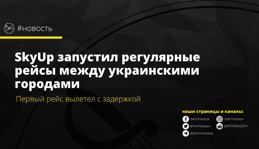 Украинский лоукостер SkyUp запустил регулярные пассажирские перевозки по Украине. Первый авиарейс Киев-Львов произошел сегодня утром из аэропорта Борисполь. Однако, вылет самолета задержали на 1 час 40 минут.