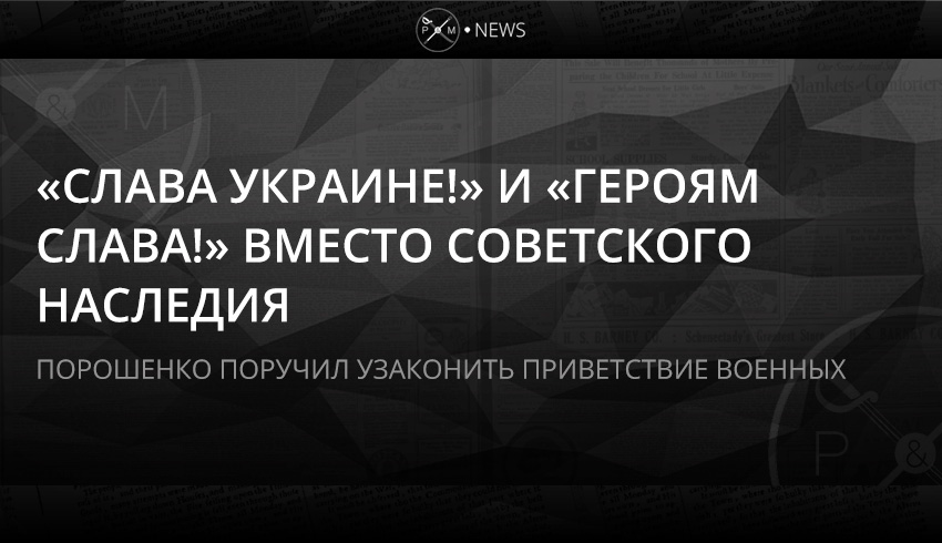 Президент Петр Порошенко поручил министерству обороны разработать законопроект об изменении приветствия военных с совкового «Здравствуйте, товарищи!» и «Здравия желаем!» на патриотичные «Слава Украине!» и «Героям слава!»