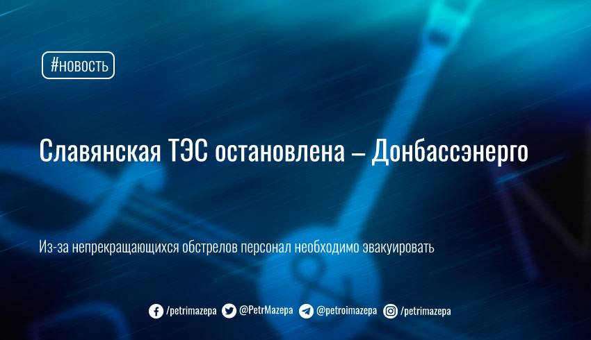 Работа Славянской ТЭС остановлена, сообщает ПАО «Донбассэнерго». Это решение принято ради сохранения жизни и здоровья персонала станции в условиях постоянных ракетных обстрелов со стороны российских оккупационных войск.
